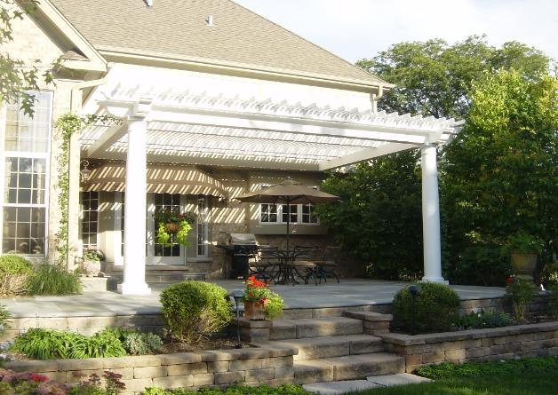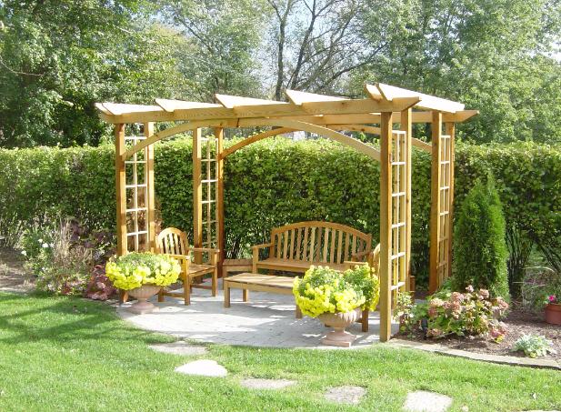 | Pergolas can serve many uses in your landscape. Rustic or formal, a Pergola can increase the value of your home and add sophistication to any landscape. They can be as simple as a platform for your favorite vines to seek higher ground or stately structures to host garden parties under. |